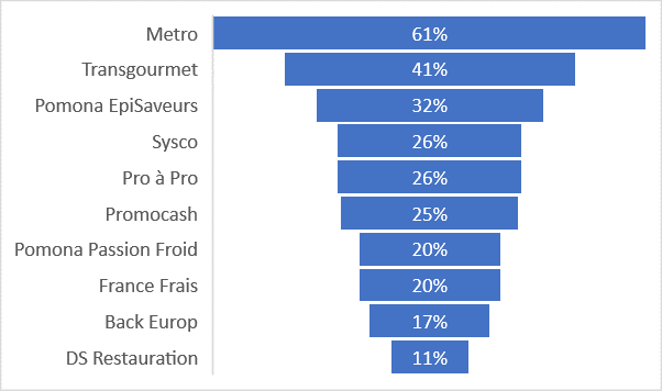 *hors restaurateurs indépendants. Les PME-ETI réalisent 22% de leur CA avec les restaurateurs en direct