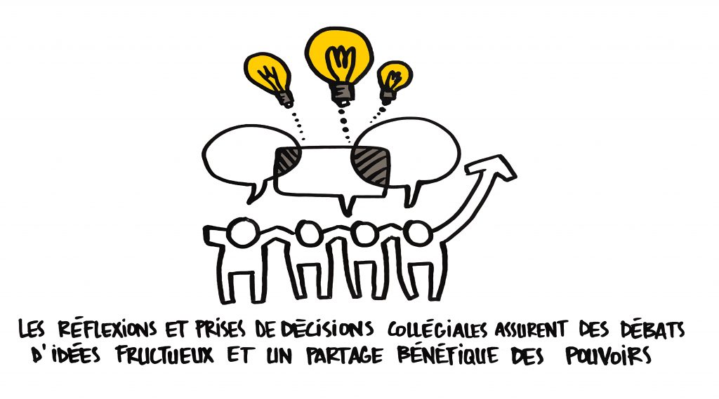 • LES RÉFLEXIONS ET PRISES DE DÉCISIONS COLLÉGIALES ASSURENT DES DÉBATS D’IDÉES FRUCTUEUX ET UN PARTAGE BÉNÉFIQUE DES POUVOIRS