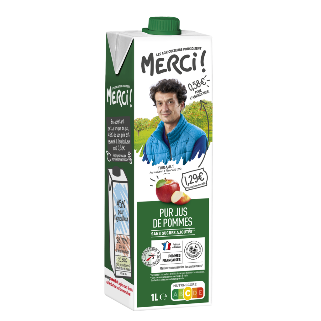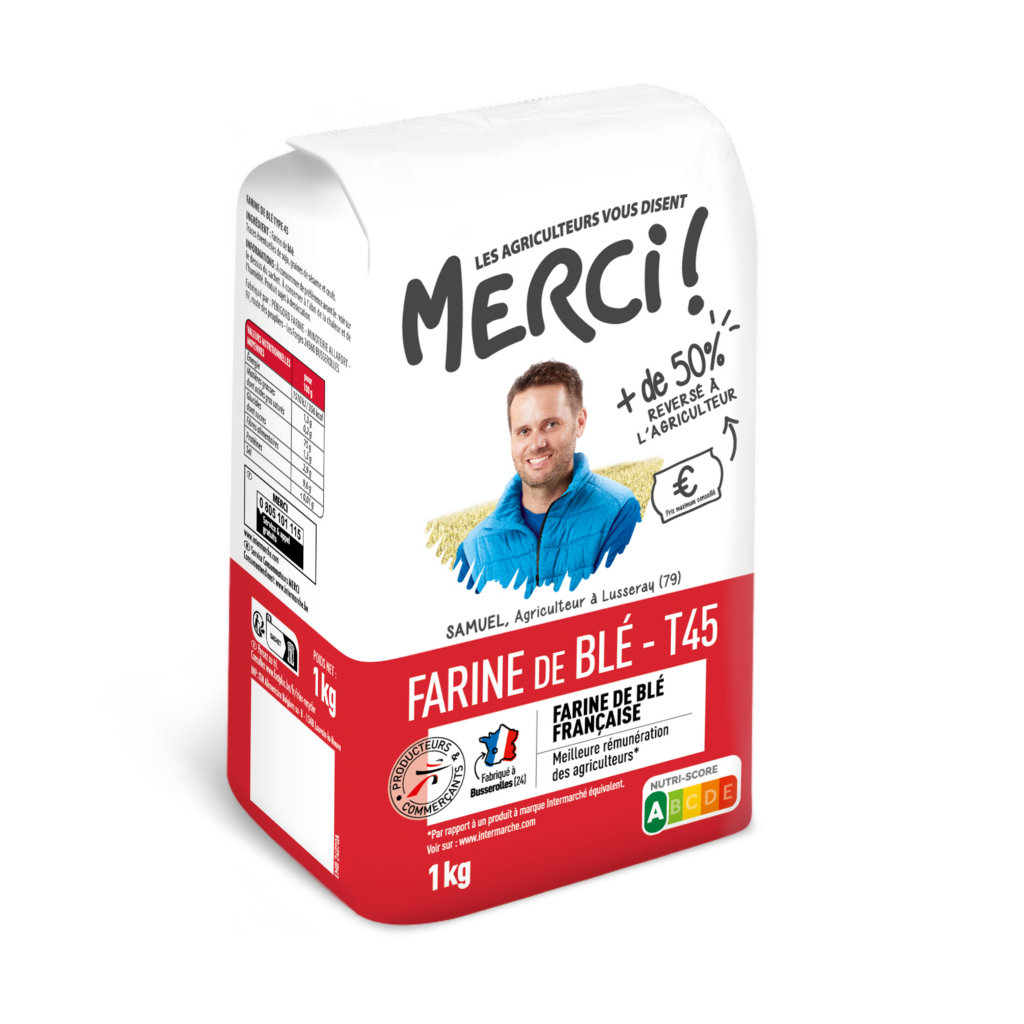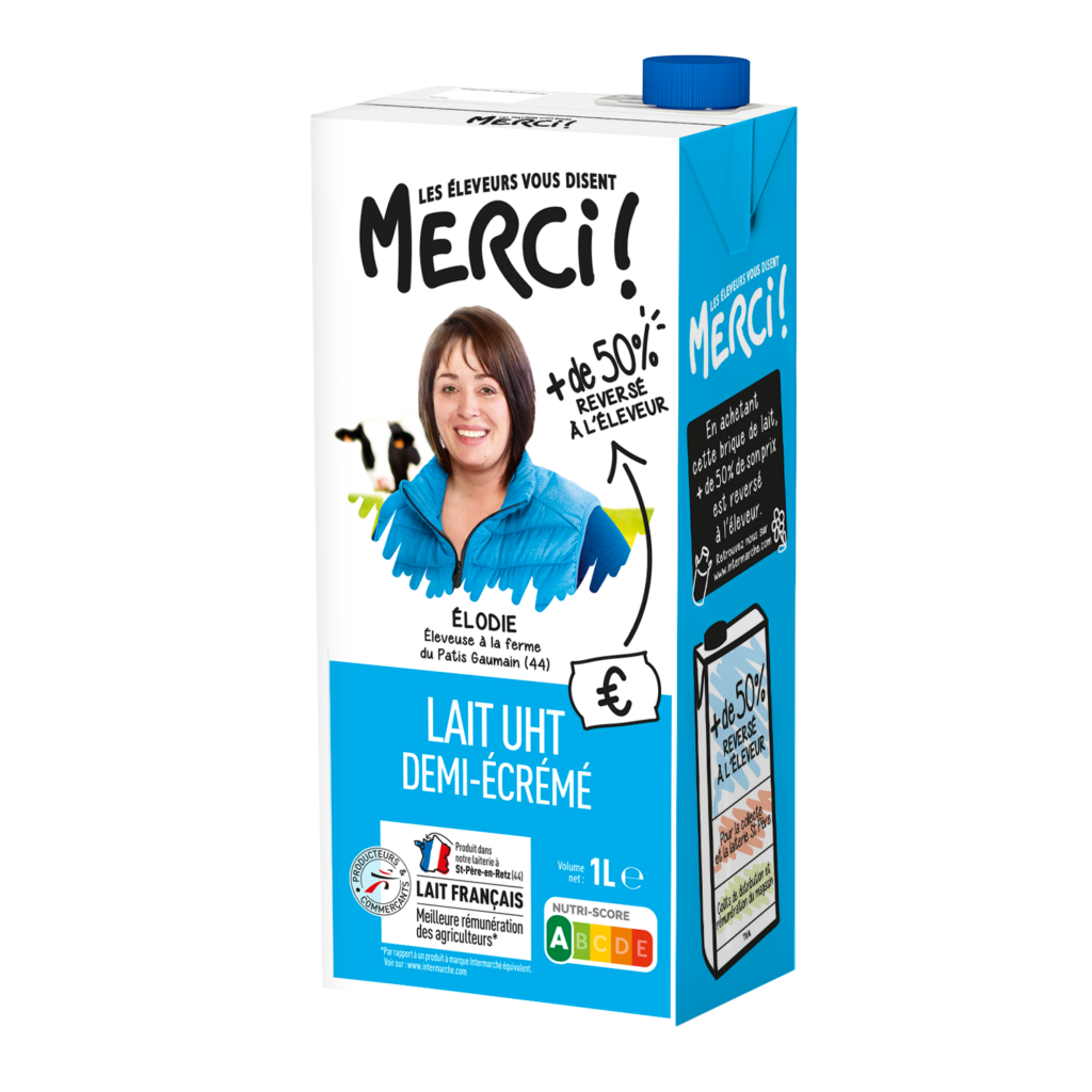Ainsi la marque de distributeur Merci ! qui rémunère mieux les éleveurs a été créée en 2018 avec le lait. Aujourd’hui la marque est solidement installée dans de nombreuses catégories : le lait toujours mais aussi le miel, le jus de pomme, le jambon pour ne citer que ceux-ci et plus récemment la farine.
